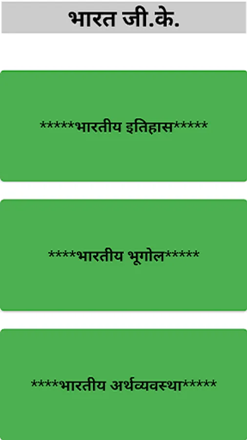 App contain all exam Topic category wise e.g भारत जी.के. बुनियादी सामान्य ज्ञान, विज्ञान और तकनीक. विश्व जी.के.