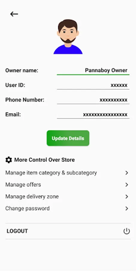 With the help of Pannaboy Store Manager app owner can manage orders, products and account and appearance of Pannaboy user app.