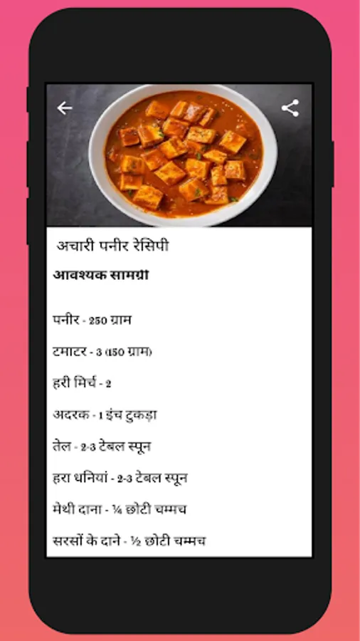 🧀🍽️ Explore a diverse collection of paneer recipes in Hindi that will leave you craving for more. From classic Indian delights like Paneer Tikka Masala and Palak Paneer to innovative fusion creations such as Paneer Butter Masala Pizza and Paneer Stuffed Paratha, our app has something to please every palate.