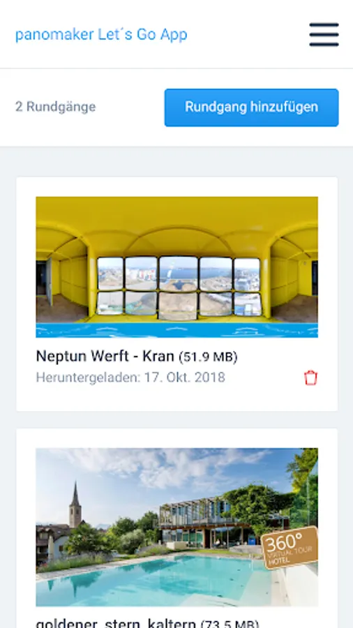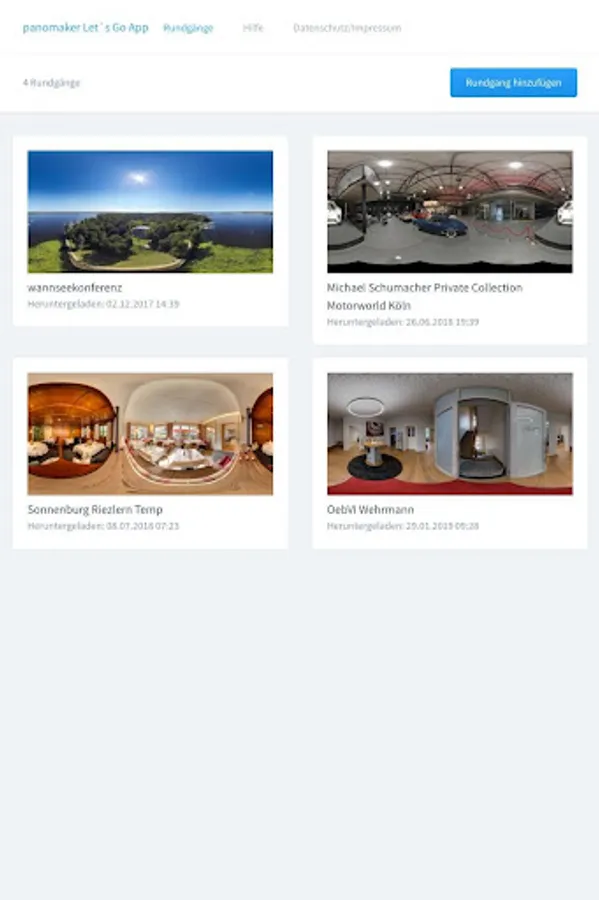 The panomaker Let's Go application makes it possible to use virtual tours from the panomaker CMS offline.