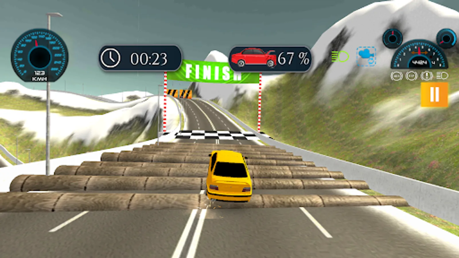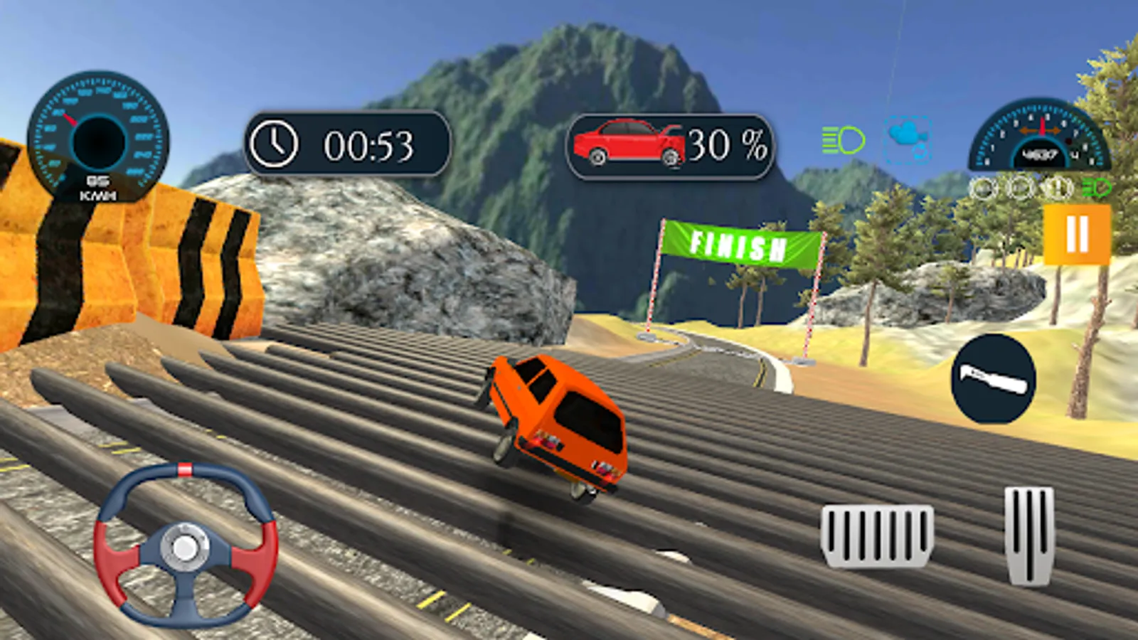 Go down the roads at high speed and go over the potholes if you are able, jump extreme trees, and cause the maximum damage possible but not 100 percent. Use a truck or Jeep to crush the fallen trees and pass your level. Enjoy extreme destruction on the mountain map, where you will drop your car down the mountain and break it into fallen trees watching how cars collide.