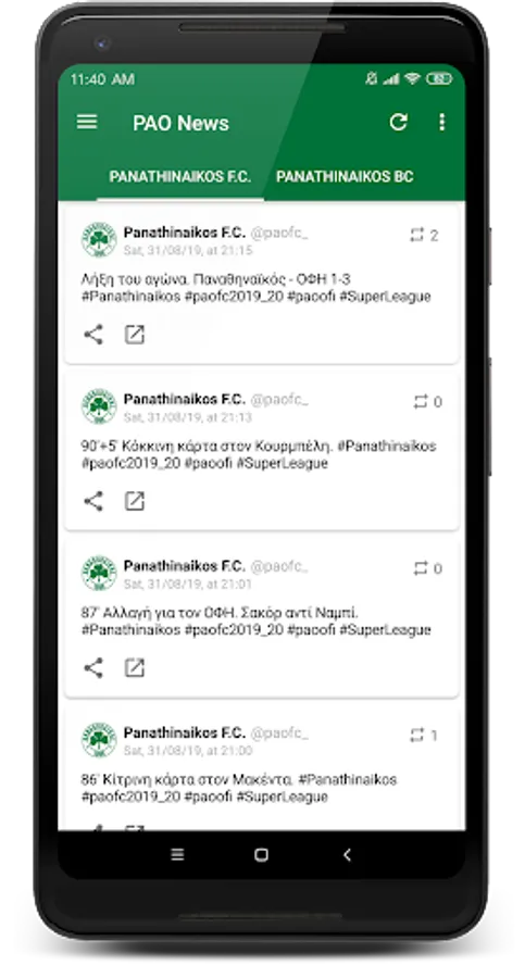 PAO News delivers news instantly from various social media and sports websites platforms for Panathinaikos.