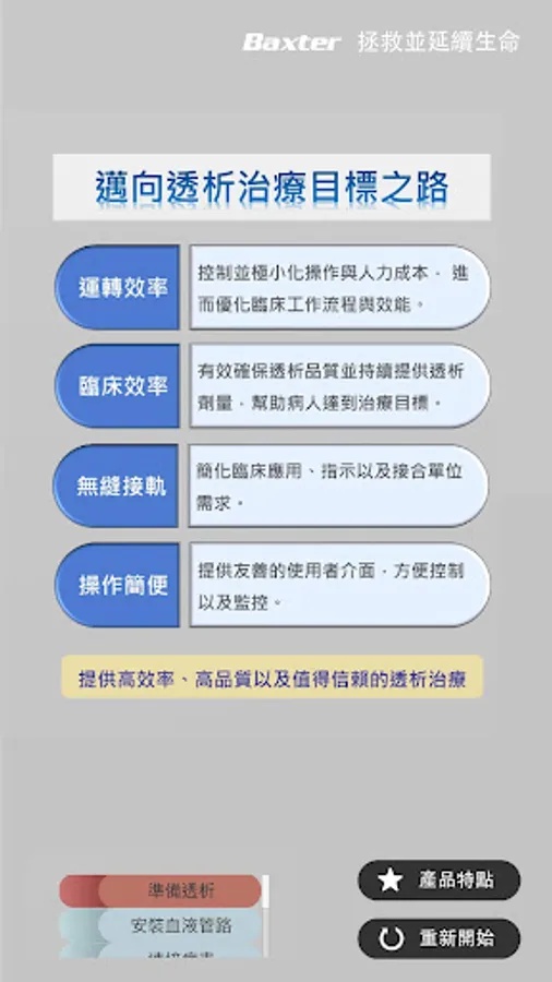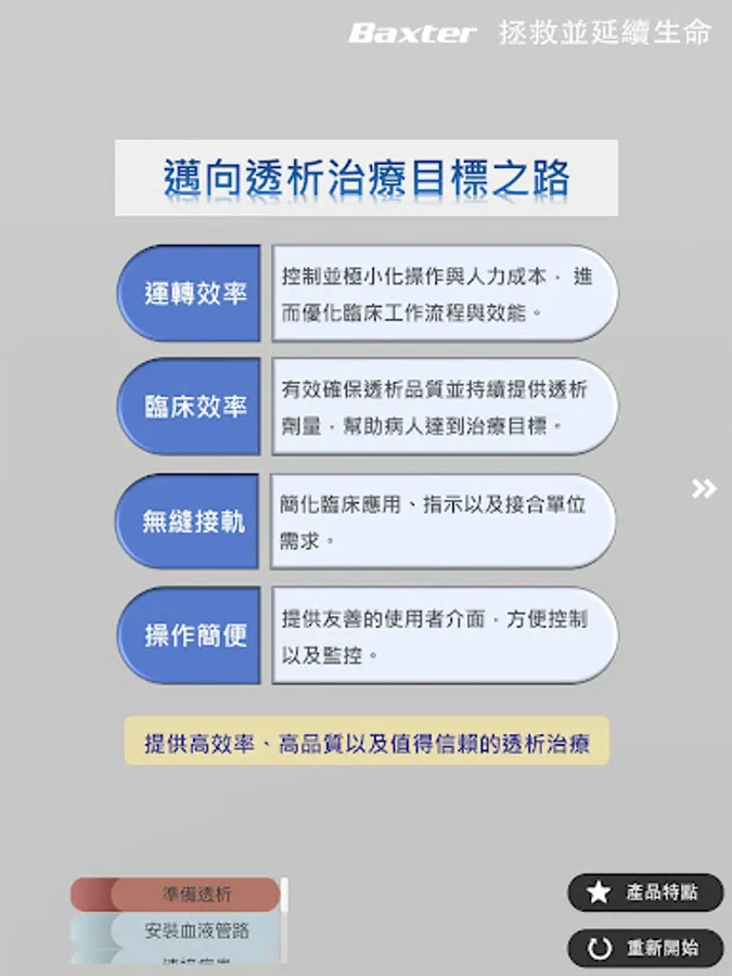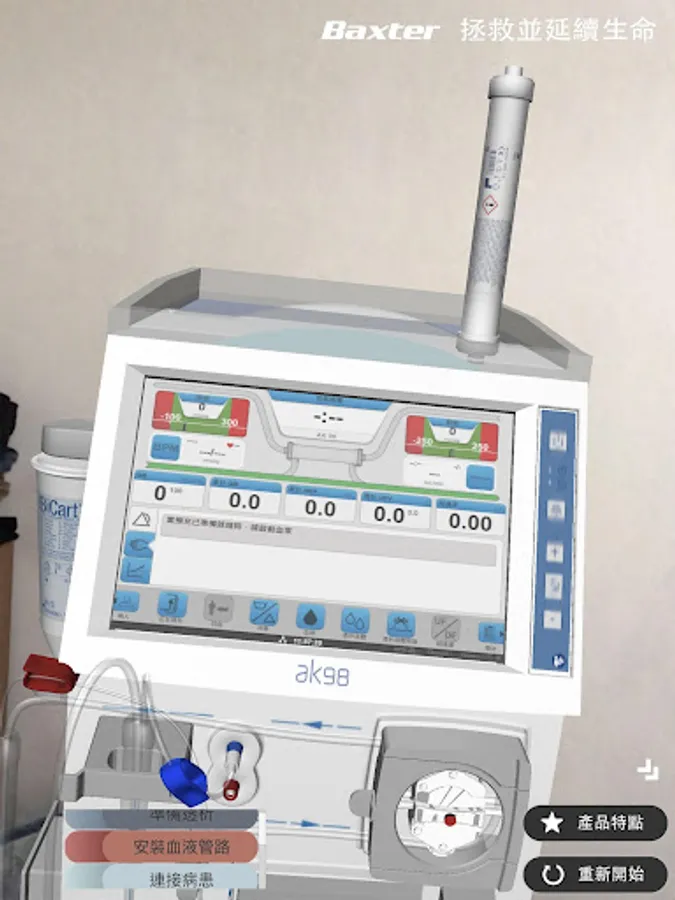 醫護專業人員可藉由AK98血液透析機的外觀、配件位置介紹、操作介面指引,習得並熟悉所需的操作,加強教育訓練之品質。