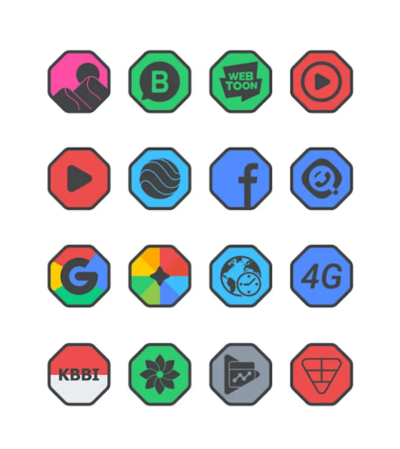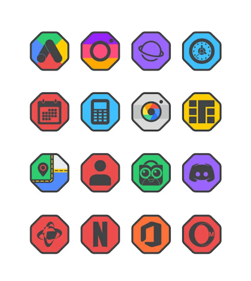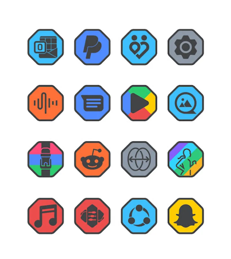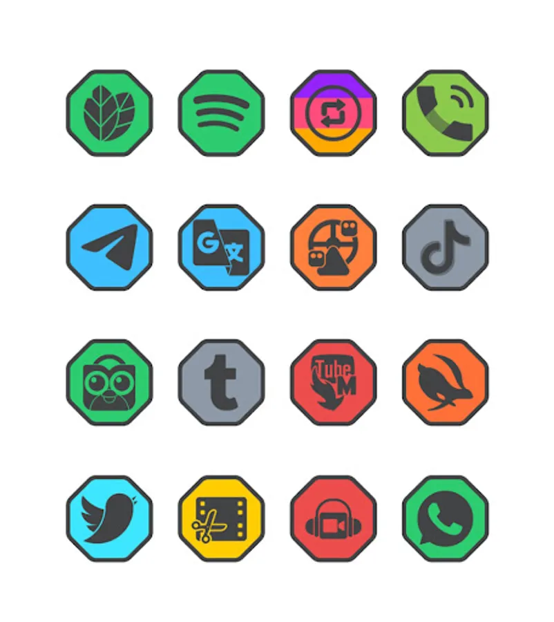 Octa Dark is a flat icon pack with dark main icon and border