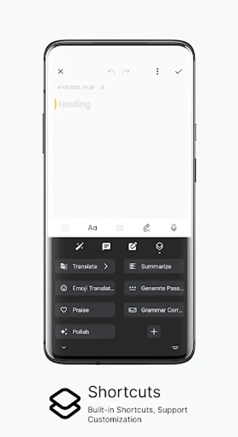Of course, you can also just use the mini AI keyboard which provides shortcuts and AI Generate function.
