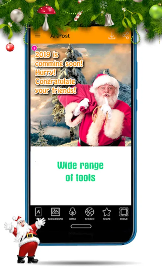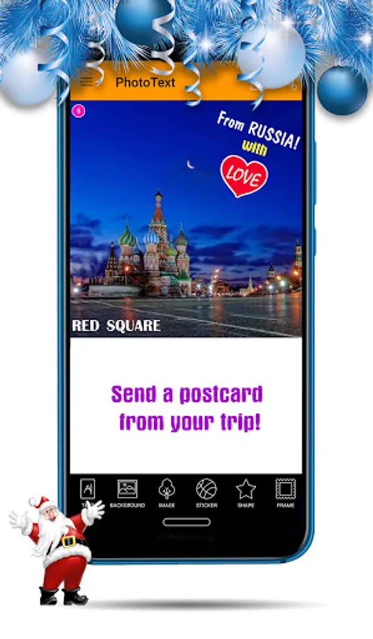 π Our application is designed to quickly, easily and beautifully create a postcard or post. It is very easy to use and in just a few minutes will help you create a unique post or card to congratulate all your loved ones with the coming Christmas, new year, birthday, Valentine's day, wedding anniversary or birth of a child.