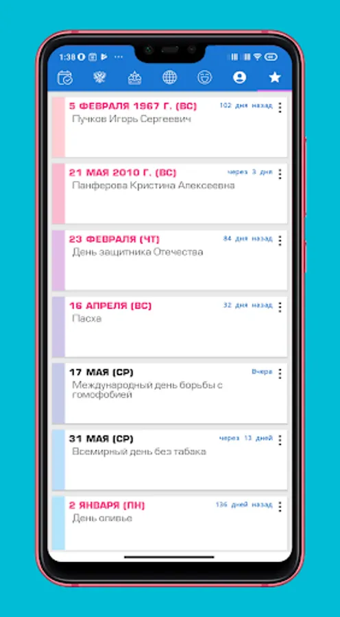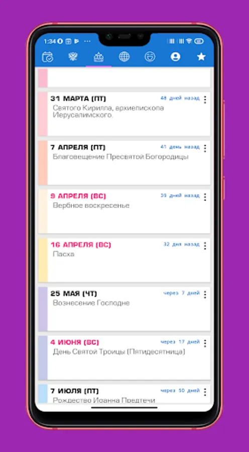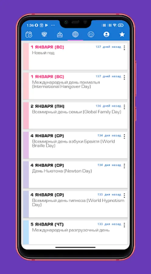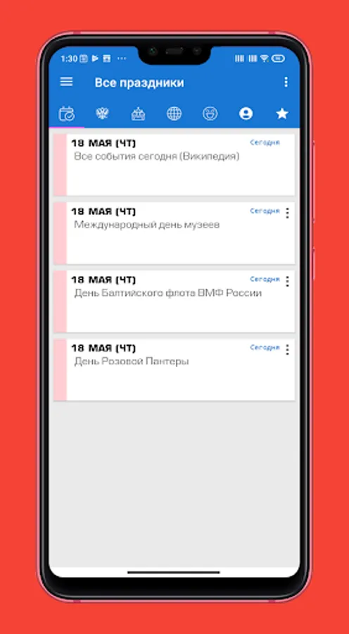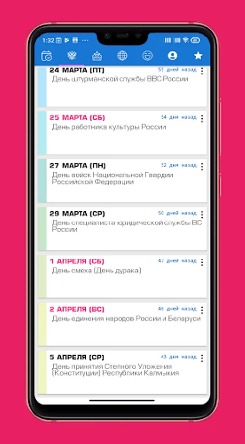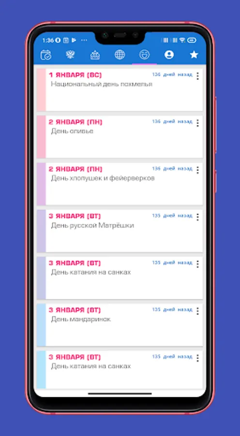 A holiday every day is a convenient and versatile application for your mobile device that will help you stay up to date on all significant events and holidays. Whether you want to celebrate Russian holidays, world holidays, Orthodox holidays, funny holidays or birthdays of your contacts, this application will provide you with all the information you need in one place.