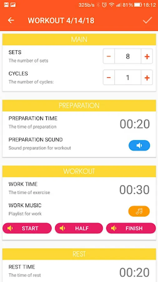 5. Selecting a separate sound stratum, middle and finish of the period (work / rest), which should also contribute to improving the convenience of using the Interval timer PRO.