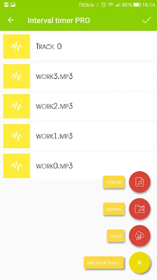 2. Now you can not just choose a melody for training or recreation, but also to make playlists. At the same time, you can choose from a built-in music collection, music in the phone, from the cloud.