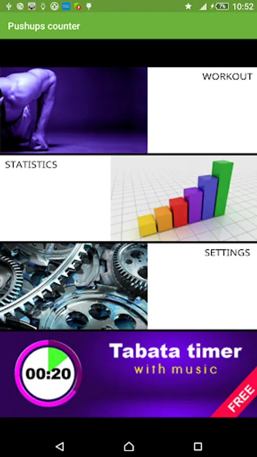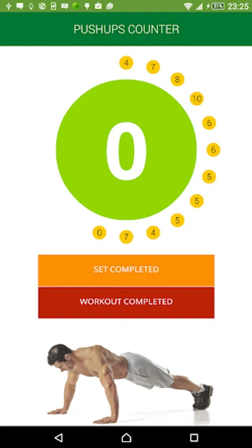 Push-ups, the push-up counter will count your push-ups, for this you need to touch the screen with your nose when doing push-ups (be careful who has a very sharp nose - do not damage the screen, the developers are not responsible for damaged devices). The push-up count is pronounced by voice. This calculation is not chosen by chance, touching the screen with your nose, you perform the deepest push-ups, thereby working out all muscle groups best. You can also choose the proximity sensor as the method of counting push-ups. This method is less accurate, as it depends on the specific device and may not always work, since its purpose is to determine whether the user has put the phone to his ear. You can also enter the value of the number of push-ups manually after the end of the workout. This method is suitable for those who cannot do deep push-ups or push-ups on stops. Push-up app, Push-up counter will save your workouts and build visual charts of your progress. You can also set the time and days of the week on which you would like to do push-up workouts and the program will remind you of the next lesson. Share your push-up progress with your friends.