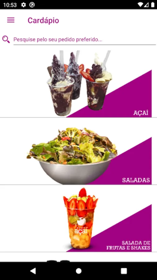 Application aimed at sales at the Rico Açaí establishment, both in delivery, and withdrawals at the counter. Without online payment.
