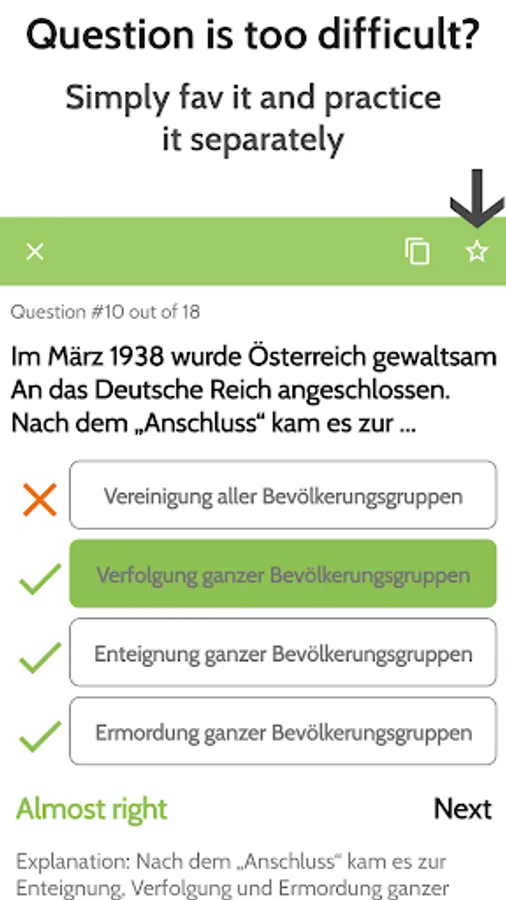 🌟 The app contains hundreds of questions of Austrian democracy, history and history of your state (Bundesland)