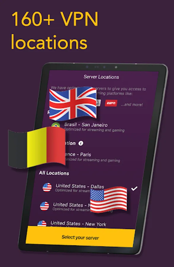 You can connect to 3,000+ VPN servers in 160 locations in 94 countries.