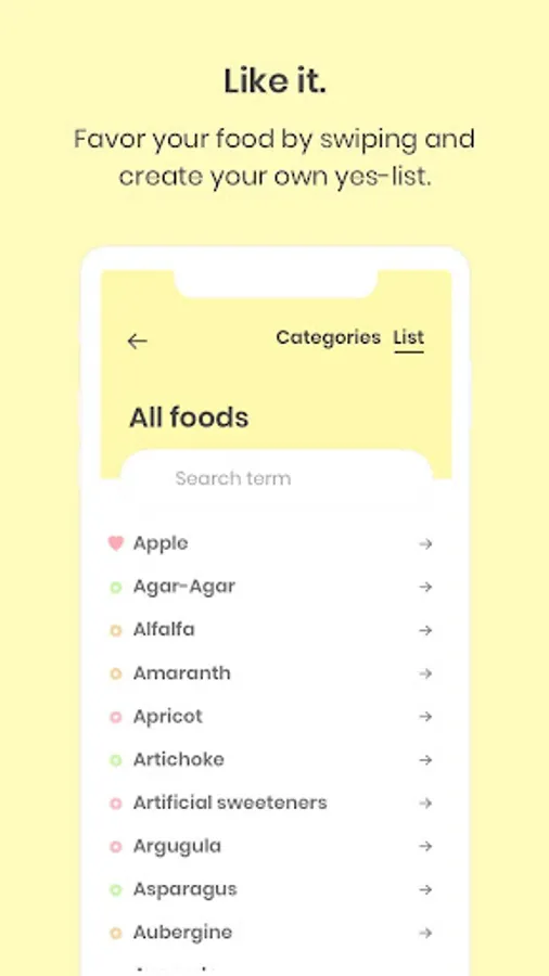 Ingrid will also automatically show you an individualized list of foods that are tolerable. Because Ingrid is not about prohibitions, but about a better lifestyle. And that includes a balanced diet.