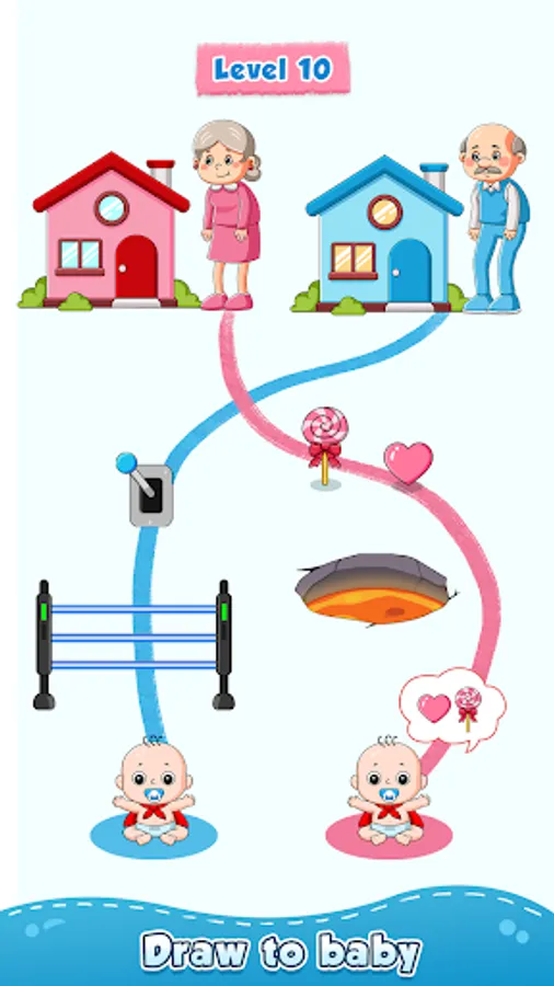 Granny Rush: Draw To Go Home is a fun, addictive and engaging draw game that puts your problem-solving skills to the test. Your mission is to help Granny and Grandpa save the baby by draw a safe path from home for them to follow through a range of obstacles and challenges. Be careful not to let Granny and Grandpa bump into anything, or they'll get dizzy and you'll fail.