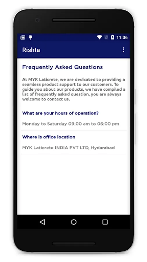 MYK LATICRETE Rishta is a platform that provides its trade partners and non-trade partners access to features such as the company’s product catalogue , product selectors, coverage calculators, information in relation to events conducted by the company, registrations for the same, etc. The platform also provides incentives to certain users by giving them some points , these users can check their balance and redeem the points that have been accumulated in the App.