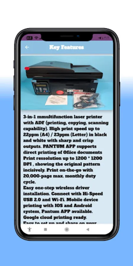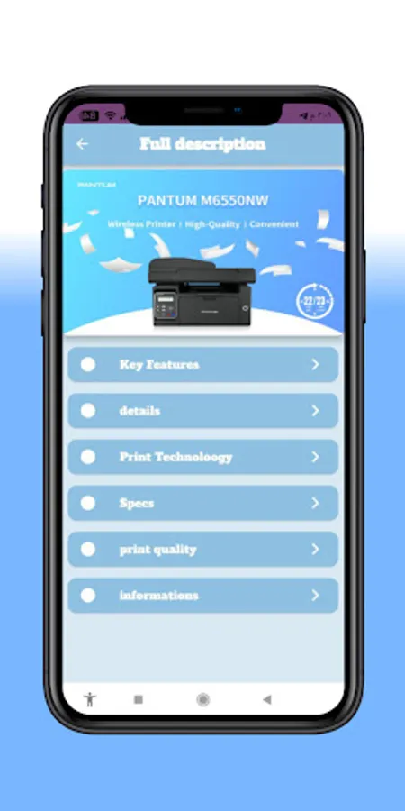You can find all the details you require about the Pantum M6550NW Laser in this app.