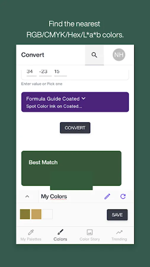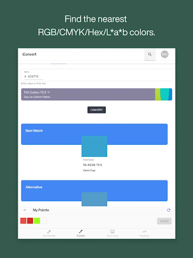 • Convert – Find the nearest RGB/CMYK/Hex/L*a*b* color equivalents to Pantone colors or convert between Pantone colors in different libraries.