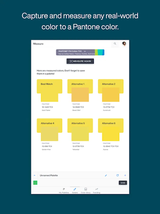 • Measure – Use the Pantone Color Match Card with Pantone Connect Mobile App to capture color inspiration in the real world, wherever you find it.