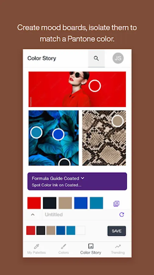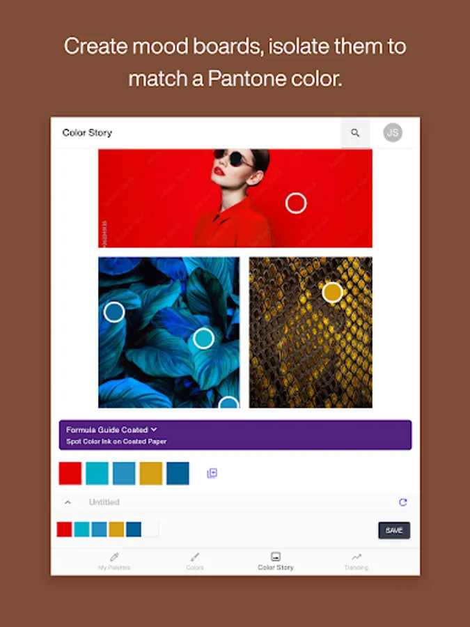 • Color Story – NEW mood board function lets you use 1, 3, or 5 images to create a color collage and isolate relevant colors to create your own original color story.