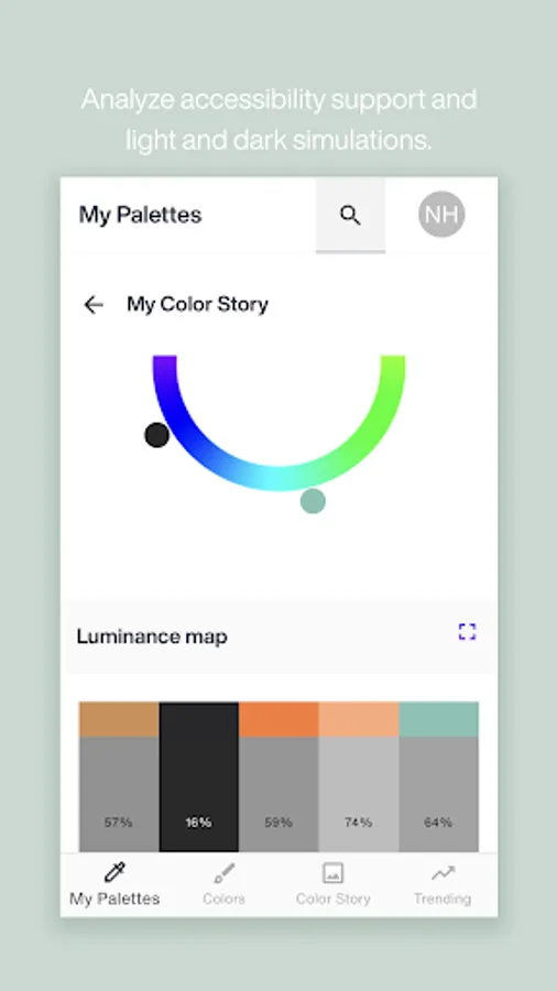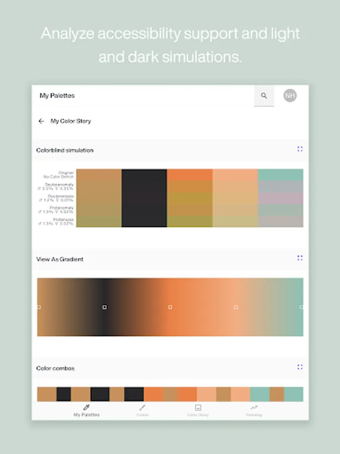 • Accessibility Support – See how your palettes may appear to people with common color blindness.