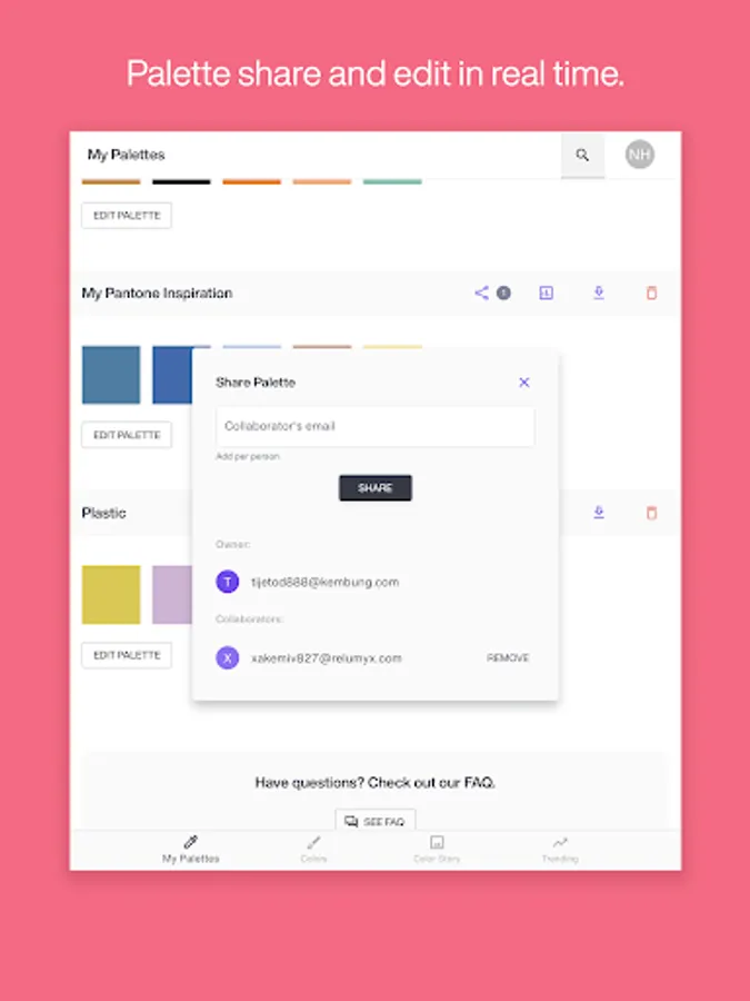 • Share – Send palettes to everyone who needs to use or review your color schemes.