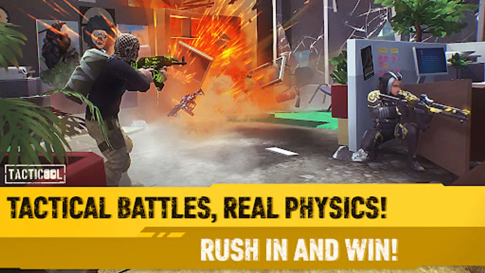**Regular updates, new events**, and new cool gun game elements. With Tacticool 5v5 game you'll never get bored. During events, you can get new gameplay experiences for upgrading your killing and shooting skills. Take part in special events: kill enemies in armed heists, survive in free fire outbreaks, stand-off attacks of monsters, eliminate zombies when duty calls! Win free rewards and great prizes.