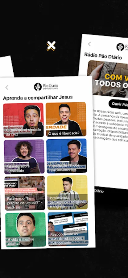 Follow our web radio, an important tool for your spiritual growth. There, you hear the daily devotional, messages of encouragement, guidance, comfort and salvation. We also provide a quality musical program for you, with words and ministrations that build your daily walk. Every week, on Fridays at noon, you can follow the Connection University podcast, our weekly chat program between university students, pastors, leaders and experts in academic areas promoted by the University Pão Diário project. The focus of each conversation is to understand the topic at hand within the Brazilian student environment. Every week an uplifting subject for your life.