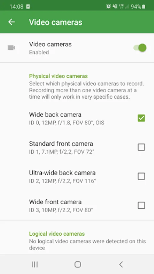 * The app's philosophy is to try and fail rather than not even try. For example, you can tell the app to record 4 cameras at once, but that is obviously unlikely to succeed.