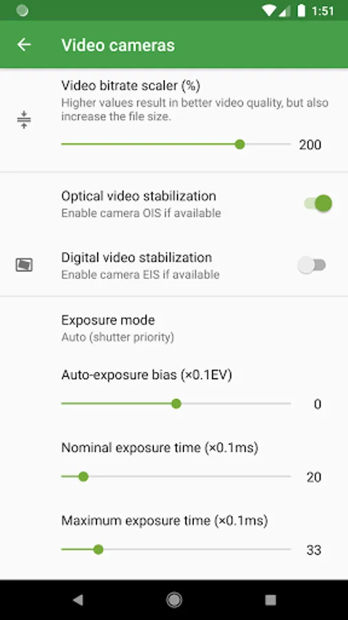 * CAUTION: Settings are remembered between app runs, including settings like the auto-exposure bias.