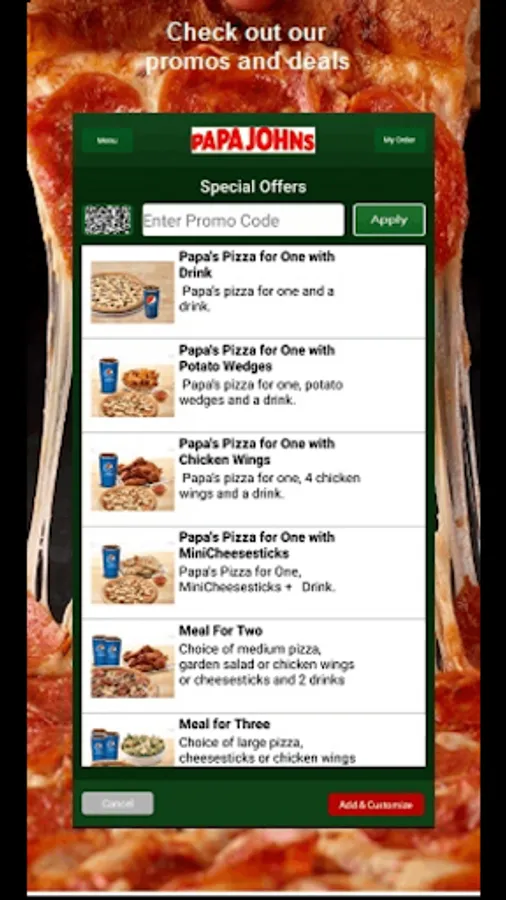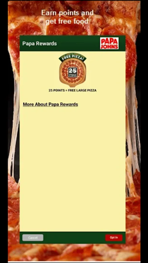 The Papa John'z Pizza app provides users the ability to order, contact us, find us on Social Media, learn about new products and promotions. You can