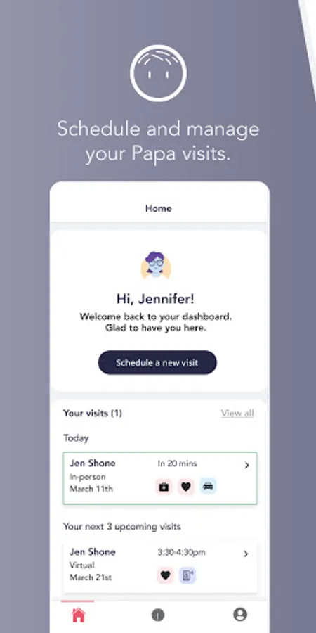 • Schedule a Visit: Easy step-by-step process for submitting all the details to request an onsite or virtual Papa visit.