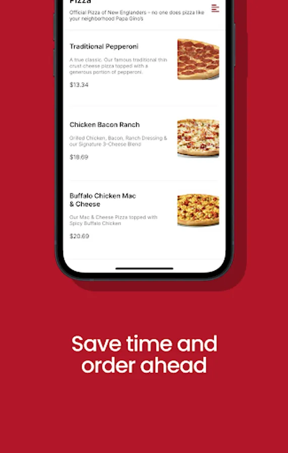 Papa Gino’s is the Official Pizza of New Englanders. Thanks for downloading the app and becoming part of our crew! Not only do we have the greatest, most delicious pizzas around (seriously!), but we also offer appetizers, sandwiches, pasta, baskets, salads and desserts. Need to feed a crowd – no problem – check out our catering options too. All the same amazing food – but just more of it! Whether you want to carry out, dine-in or get delivery – we are here to serve! Let’s do this – ordering ahead has never been so easy.