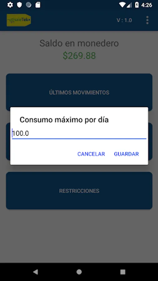 The maximum consumption per day function allows your customers to have a maximum purchase budget. This is very useful for those businesses that have a recurring consumption per day per customer. When the maximum per day has been reached, Saletek will not allow the customer to buy more even if he has a balance available.
