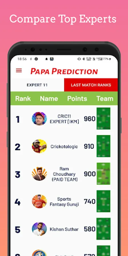 Papa prediction Cricket Prediction App for My11Circle makes Dream Team 11 app winning easy. It is a Team making app that provides the best Tips & Predictions with Live Cricket Match Score, videos for Small League dream 11 teams to make the best Grand League Teams with Match Analysis, Expert Preview, and Investment Guidelines.