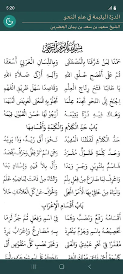 Among the basic nahwu materials that deserve attention is the nazham ad-Durrah al-Yatiimah which is before us today. That said, this is the Ajurumiyyah version of the Basrah school. Often this book is compared to the Ajurumiyyah because of the similarities in the brevity of the material in both. Even so, there are still some differences in language features between the two. We know that Ajurumiyyah is more inclined towards the Kufa school of thought, while al-Yatiimah is more inclined towards the Basra school of thought. This Nazham includes material that is rarely discussed even though it is full of knowledge and wisdom. To make it easier for students to get to know the nazham and also understand the basic rules of nahwu, the compiler makes a translation and also a brief explanation.