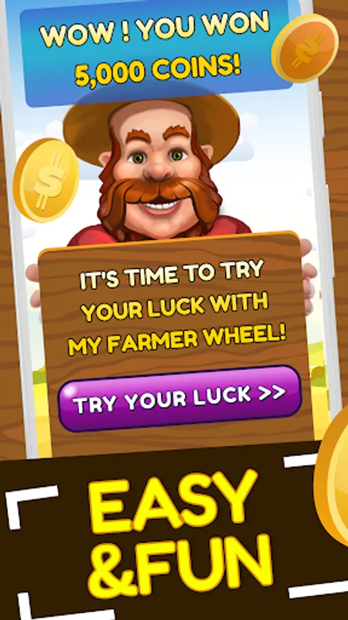 Play Chuck the Farmer by Papaya Mobile, creator of Morris , play the papaya app, play spin tournaments, play chuck the Farmer for time pass, compete in tournaments against other players. Unlike kings island, you can play for free, at your spare time, win coins, spin the wheel of luck, compete in live tournaments against other players, share Chuck the Farmer and have fun.