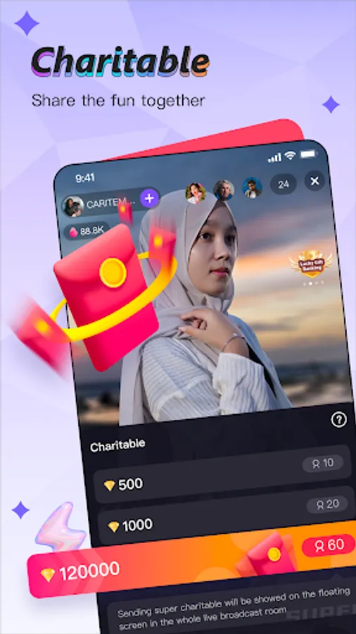 --All kinds of exquisite gifts, you can buy some gifts to support your favorite anchor, so as to attract the attention of everyone in the live broadcast, and improve your own level and get a high level. There are also VIP exclusive privileges and status symbols, and entry vehicles and avatar frames can be purchased to stand out from the crowd.