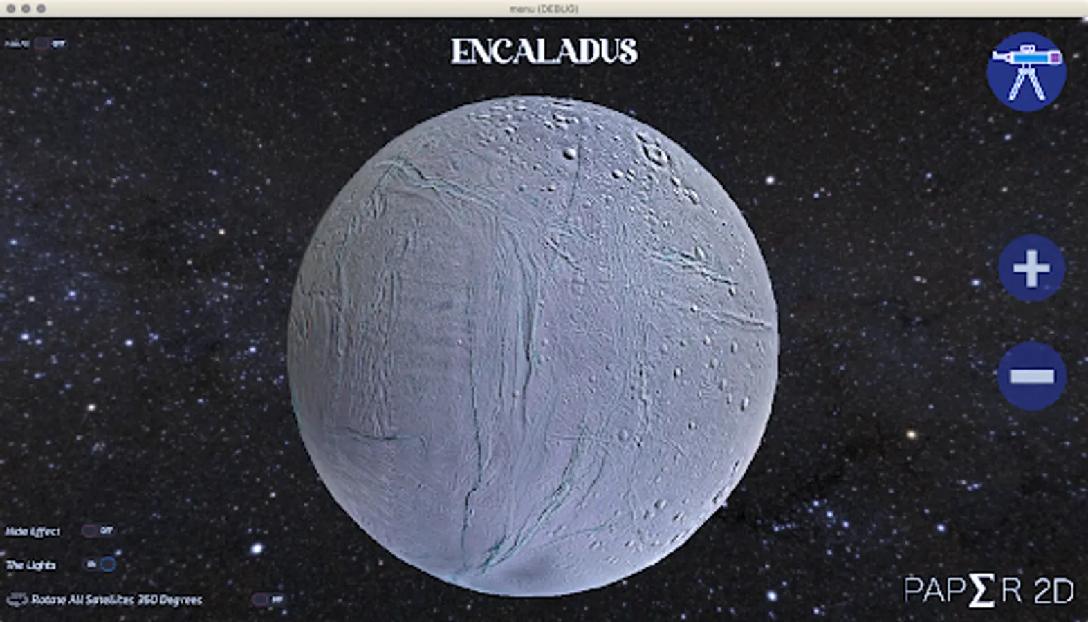 Moons(19): Moon, Phobos, Deimos, Io, Europe, Ganymade, Callisto, Mimas, Encaladus (my favorite), Tethys, Dione, Rhea, Titan, Miranda, Ariel, Umbriel, Titania, Oberon, Triton