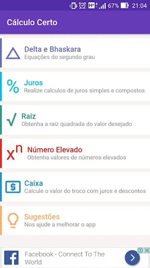 The "Right calculation" is designed to help students who have difficulties in the exact area. With it you can check if your calculations are correct and the question of how the App reached the result it offers the resolution, with step by step how you got the result. In time I will be adding new calculations, help to share, the more it grows, the more investment will do it =)