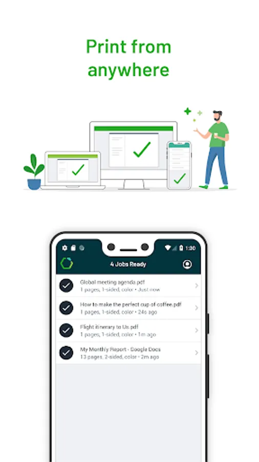 PaperCut Hive makes it easy to print from all your devices including desktops, laptops, Chromebooks, and of course your phone. See! You can use your phone for work too!