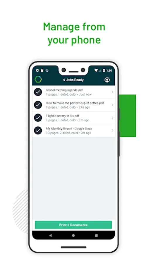 To release prints using your phone, simply tap your phone on an NFC sticker on the printer, scanning a QR code, or selecting the printer's name from a list.