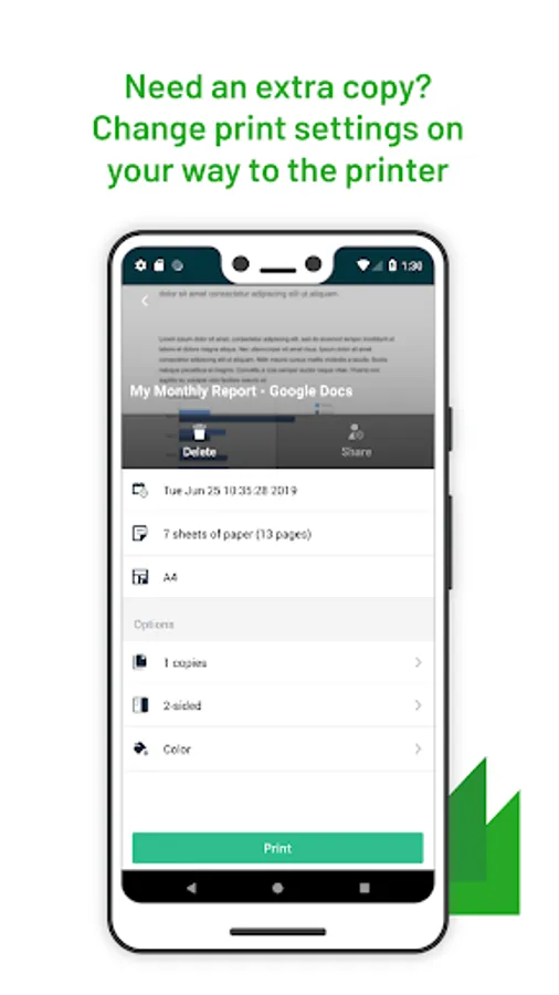 Did you forget to double-side the document? No problem, the PaperCut Hive app will remind you and allow you to make those changes on your way to the printer.