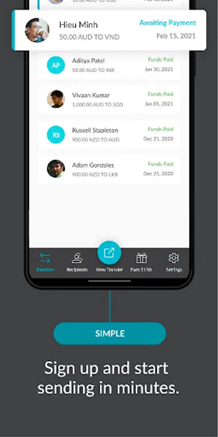 The entire process is 100% online - ideal for those wishing to send money overseas at the lowest possible cost with the least amount of fuss. You will never again need to find a physical money transfer outlet or set foot in a bank branch.