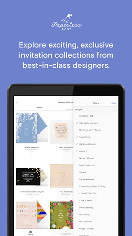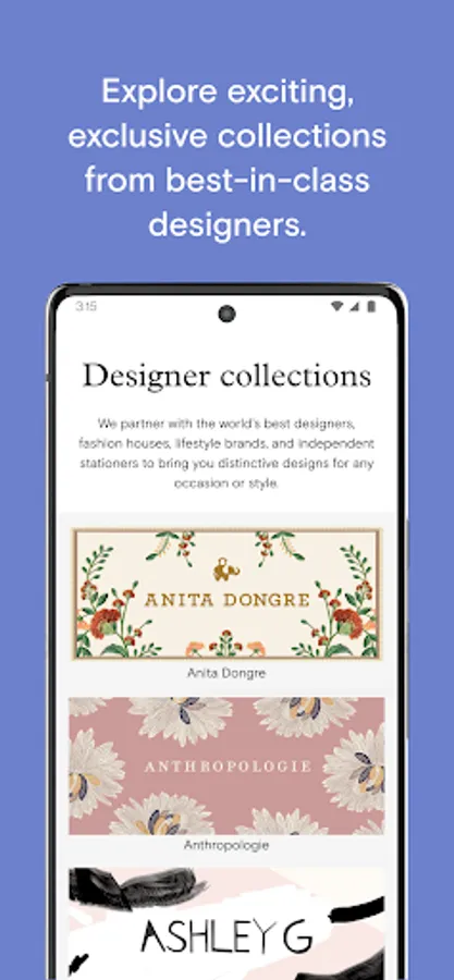 - Exclusive partner designs from Rifle Paper Co., Monique Lhuillier, Oscar de la Renta, and more.
