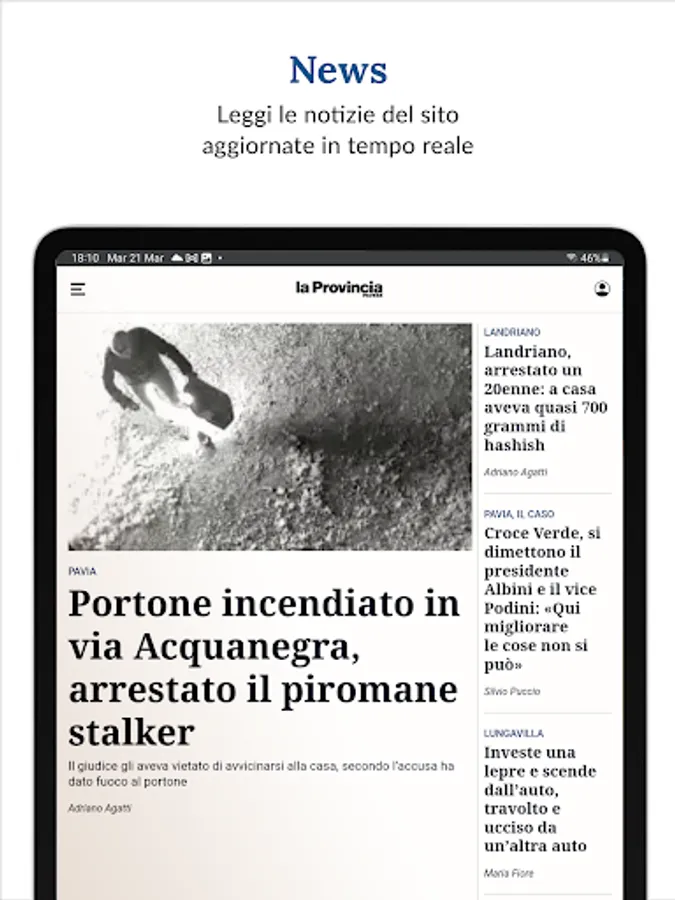 NEWS – this section is designed for those looking for complete and in-depth information: it is the entire Provincia Pavese site within the app with news updated in real time, insights, the opinions of the newspaper signatures and inquiries