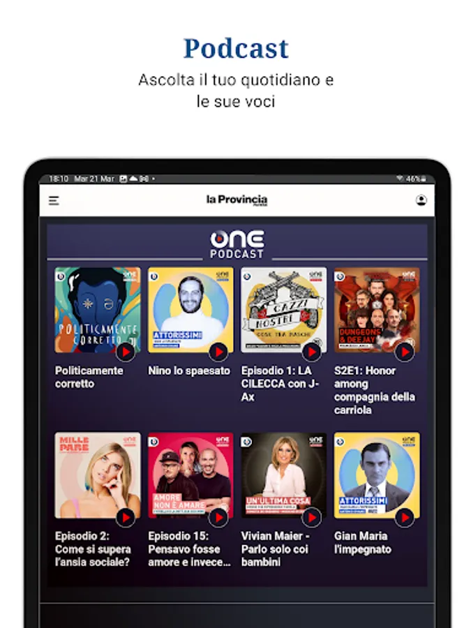Site: includes all the news, insights and audio articles available in the app and on Provincia Pavese.it. Choose between the monthly subscription at the basic price of €4.99 or the annual subscription at the basic price of €49.99. Discover the promotion of the moment!