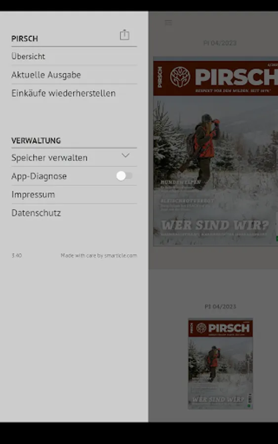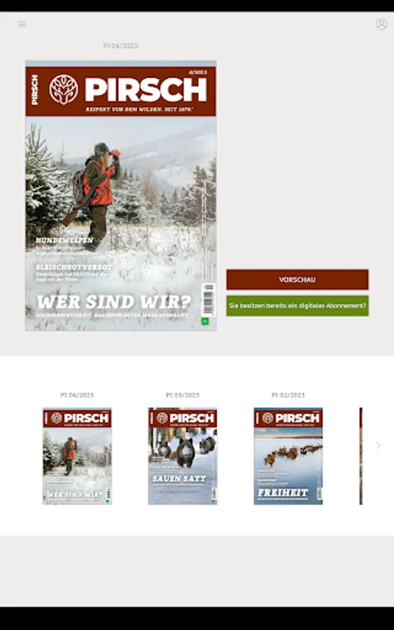 With this app you can read PIRSCH anytime and anywhere on your tablet or smartphone. It contains all pages of the magazine in the same format as in the printed edition.