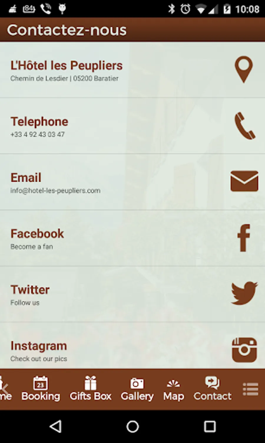 Téléchargez l’application de l’Hôtel*** Restaurant Spa Les Peupliers à Baratier et simplifiez votre séjour : retrouvez toutes les informations pratiques de l’établissement, commandez un coffret cadeau, planifiez vos itinéraires grâce à la carte, réservez votre chambre ou votre table directement depuis votre tablette ou mobile ! Et recevez tous les bons plans grâce aux notifications.