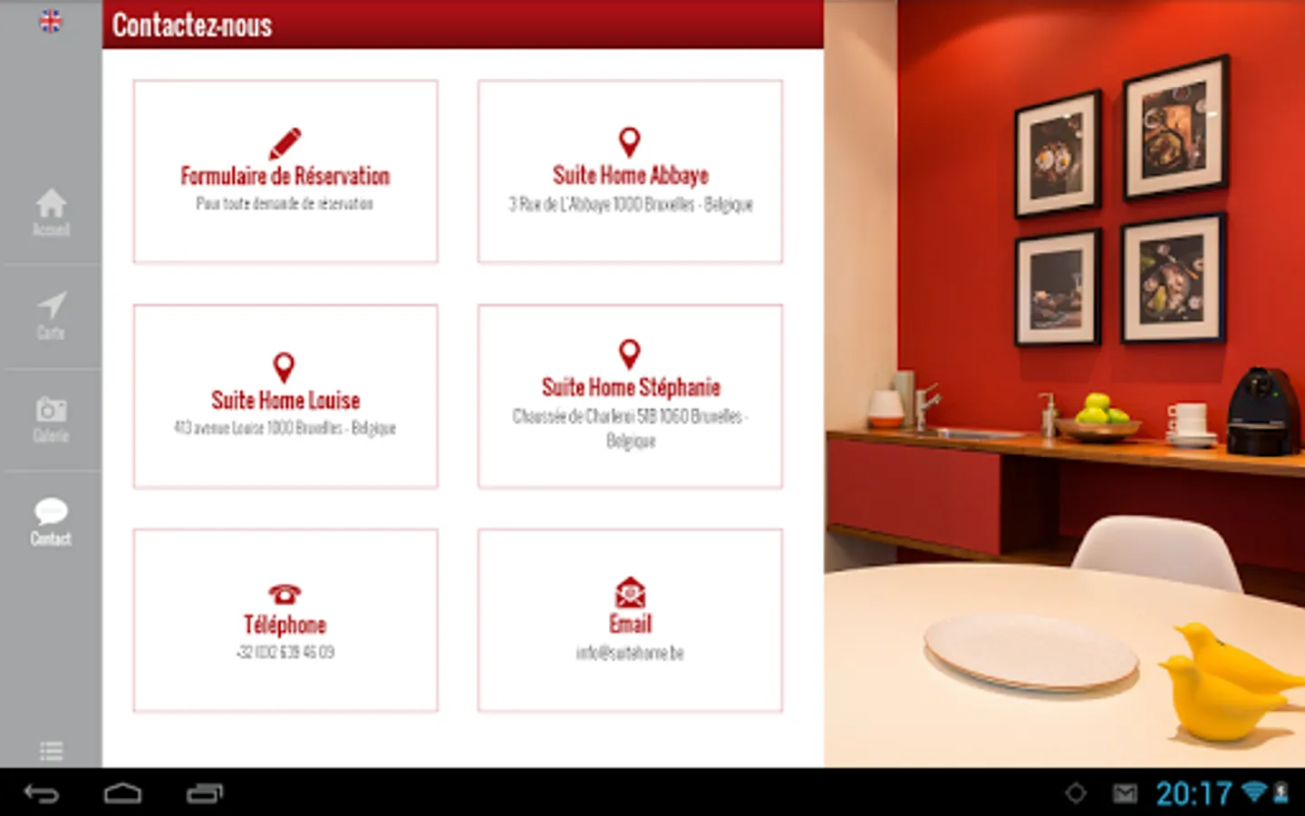 Quickly discover the application Suite Home, rental apartments in Brussels: Stéphanie our three residences, Louise and Abbey welcome you for periods of short or long term. Close to shops, bars and restaurants, apartments and suites Suite Home is the perfect place to stay in Brussels!